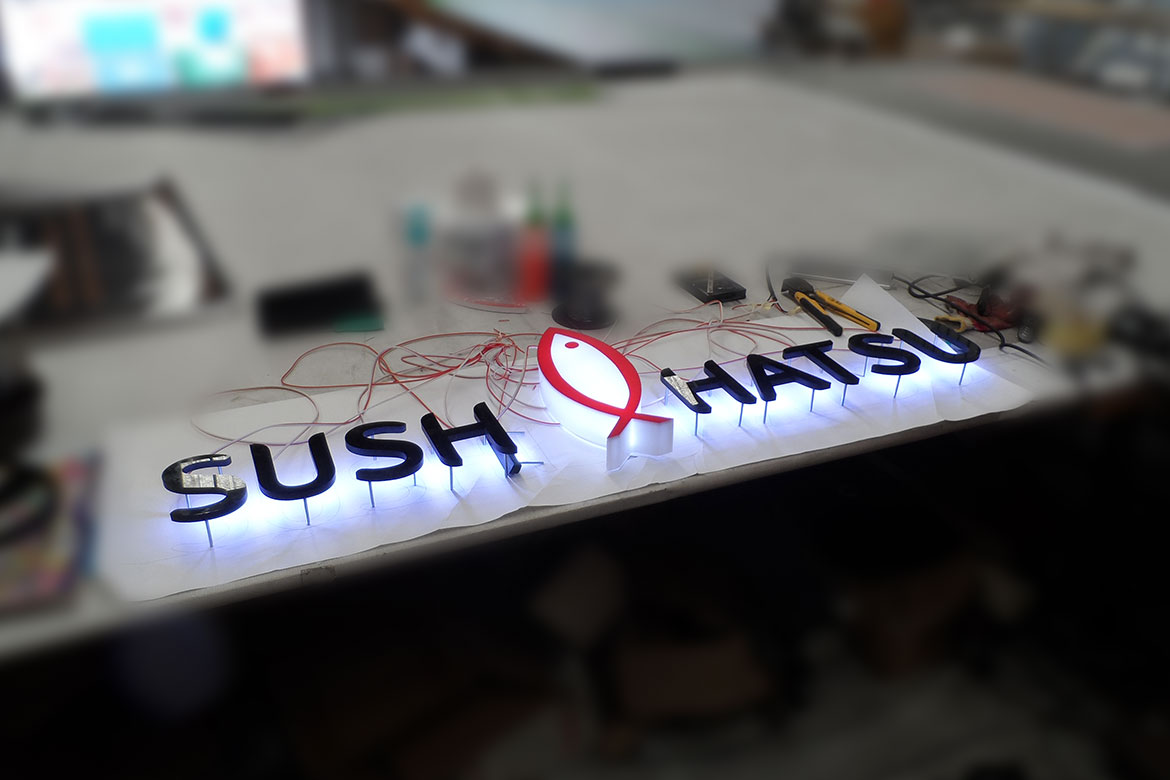 *Illuminated LED neon or non-illuminated 3D lettering, fabricated boxes or flat panels